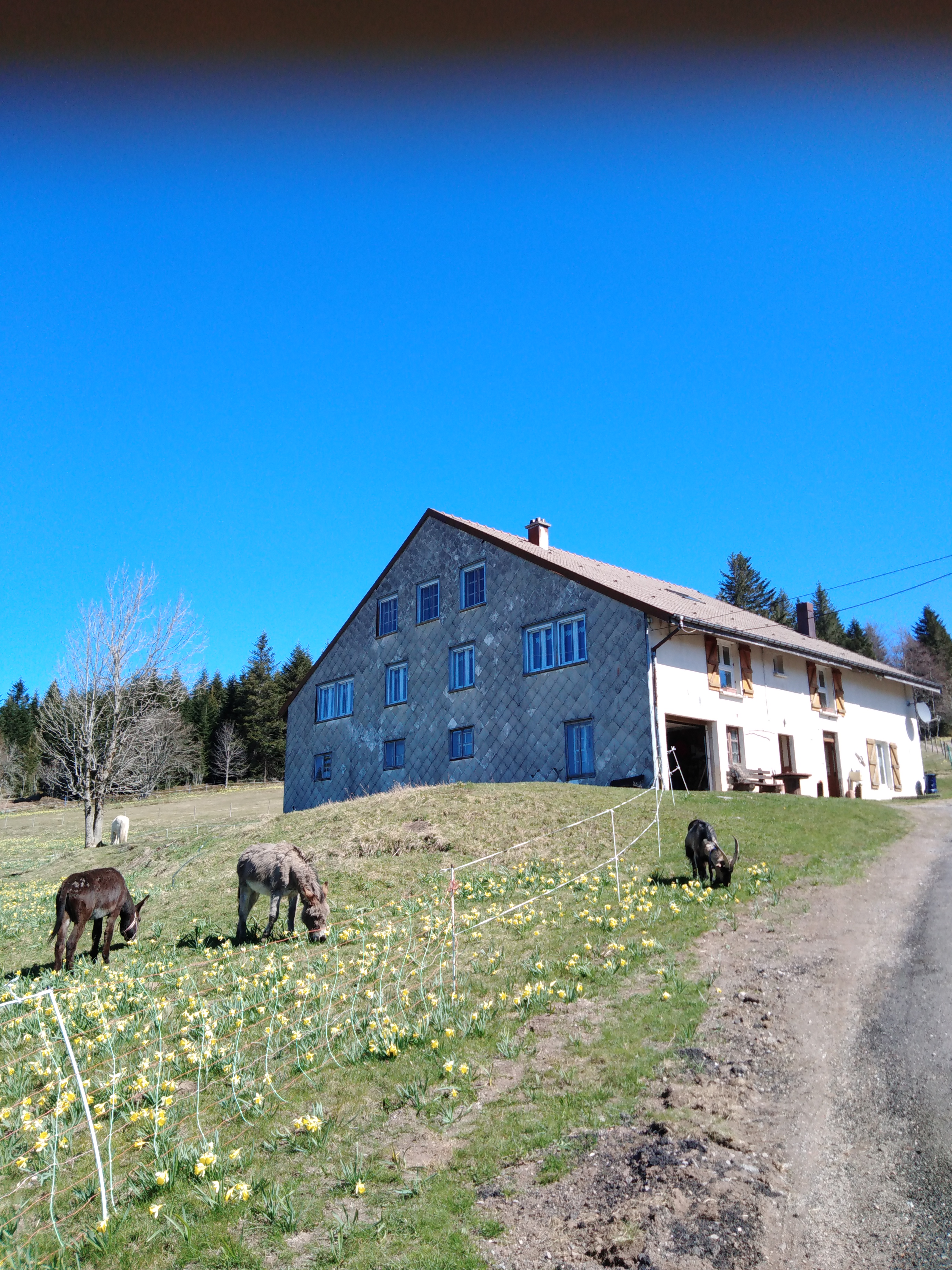 Notre Ferme Rougifaing est située au calme, entre Anould, Mandray et Fraize, avec une vue panoramique sur la vallée de la Haute Meurthe. Depuis 20 ans, nous élevons des chevaux Pure Race espagnole et Paso Peruano. Une passion de Barbara est son grand potager bio qui nous fournit un grand choix de fruits et légumes savoureux. Bernhard est sculpteur et artiste peintre qui enseigne son savoir-faire aux intéressés.